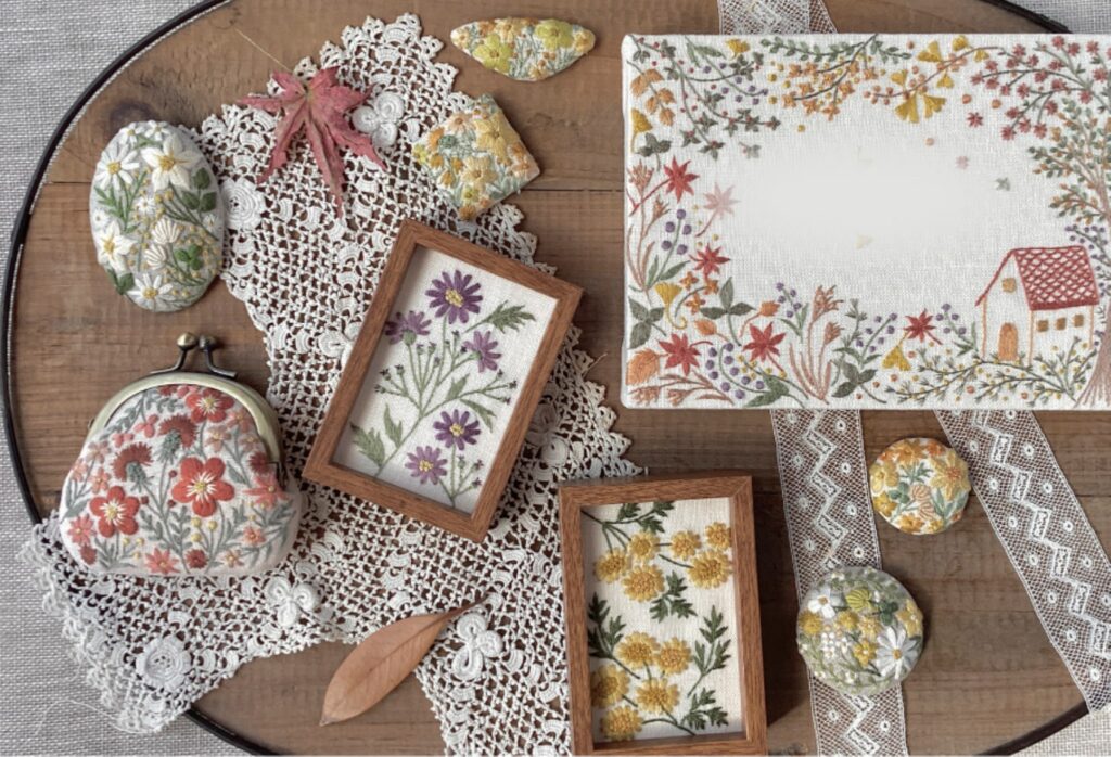 「寒くなるまでに花の刺繍でお支度をして 暮らし周りに彩りを…」作家メッセージより